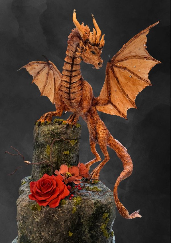 Dungeons & Dragon Cake with handmade dragon & D20 dice