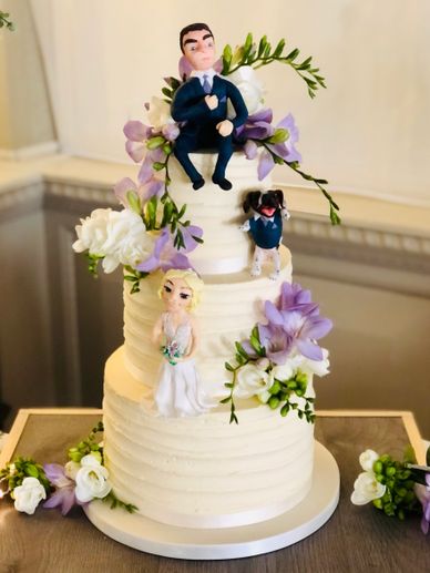 "Thank you so much for our beautiful cake! I was taken back by how gorgeous it is! Amazing job! Love the little Reggie model and how sweet that you got to meet him too! Really appreciate you being able to add him with his outfit too. Everyone commented on how lovely the cake tasted and looked!"