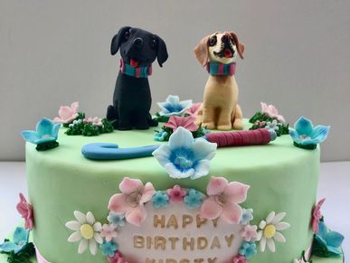 "Kirsty and all the family thought it was the most incredible cake they've ever seen or eaten and the doggies almost made her cry! Thank you so very much, I will highly recommend you to all my friends. Thank you once again for the best cake ever!"