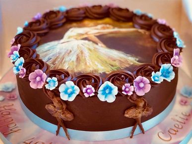 "Thank you so much Michelle, Maisie was over the moon when she saw her cake grinning from ear to ear! I must add (after reluctantly cutting into it) it tasted as good as it looked, beautifully soft chocolate sponge and butter cream icing on the bottom and pink vanilla sponge with jam at the top. Was great to give everyone the choice of sponge. Enjoyed by kids and their parents alike - many wanting your details! Think there may be some requests coming your way sometime soon!"