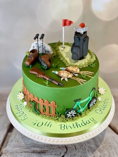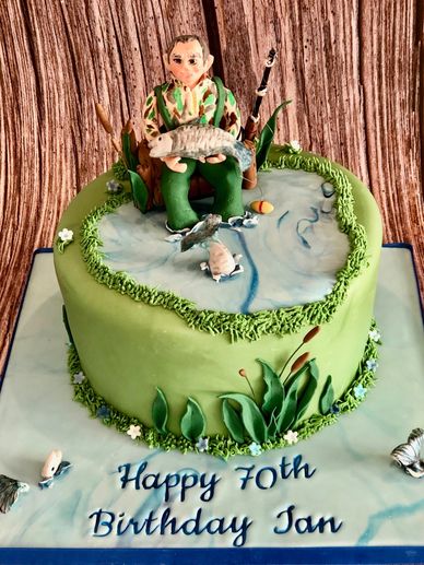 "I just wanted to say a massive thank you for Grandpa’s cake & cupcakes. He was so excited to see it and was so impressed, he couldn’t stop smiling. All of the guests commented how amazing it was and loved it as a lot of them were from one of the hobbies/clubs pictured on the cake. As for the sponge, it was delicious!!