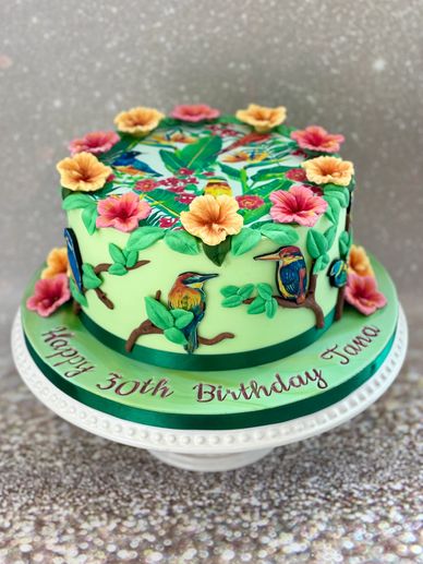"Hi Michelle, thank you so very, very much indeed, ❤️🥰 Tana absolutely LOVED it!!!! She thought it was just SO incredible and absolutely stunning and beautiful!!!! She was speechless for a few moments!! I took everyone (when the coast was clear!) to the utility to show them. They all were in complete awe and amazement at how you’d crafted the design on the top and the birds and flowers on top and around the edge. The hibiscus and strelitza and bougainvillea flowers and tropical leaves were so detailed. They all said they’d never see such a gorgeous and beautiful cake. Also the family thought it tasted SO delicious and some had seconds and took some home with them!! I just don’t know where to start to tell you that your cake completely made her day so wonderful and memorable and we were talking about it for ages!