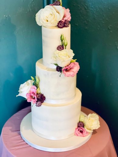 "Thank you so much for everything! The cake was stunning and delicious! I so appreciate all your work you made the process stress free with your efforts skills and communication with the hotel and florist. My guests commented on how beautiful the cake was and how great it tasted I’m so grateful!