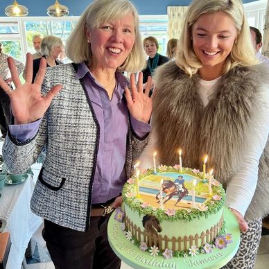 "It was absolutely fabulous thank you, both the day and the cake. It went down really well both with mum and all guests. I’ve attached a picture of Mum with it (Ellie presenting!)